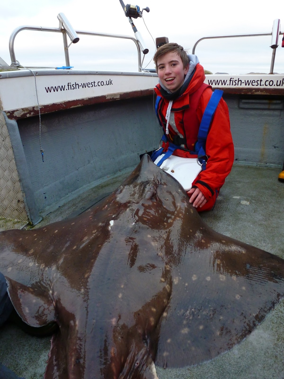 12 year old Kurtis Thomson with a big Common Skate caught in 500ft of water at Crinan - he hooked the fish and landed it himself with with any help!