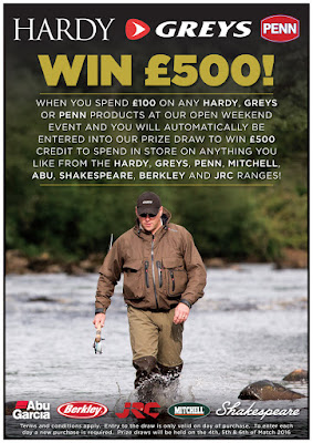 If you are visiting our Spring Open Weekend Event on the 4th, 5th and 6th of March 2016 then don't miss your chance to win £500 to spend instore with our friends at Hardy, Greys and Penn!